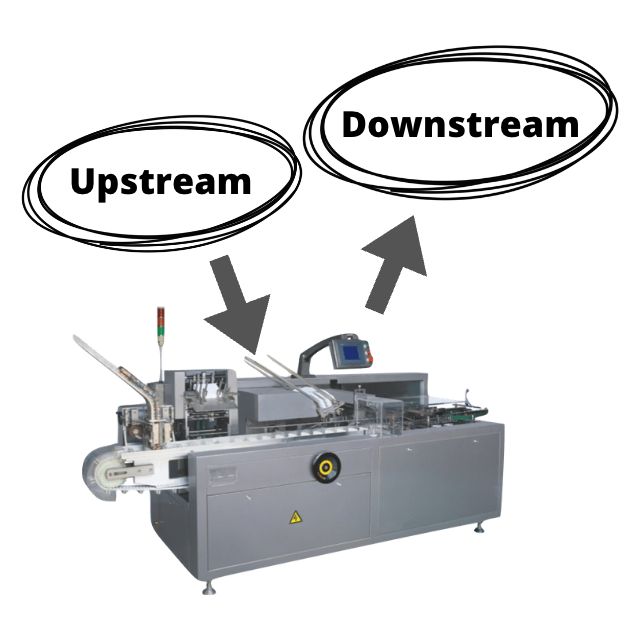全自动装盒机成品出盒后连线重量检验秤,能在线检测成品盒重量,自动剔除不合格品。搭载喷码机在成品盒上喷码,而喷码机有油墨及镭射等类型。自动入盒完成后,也可利用捆包机将成品盒按照设定的数量叠加后,用不宽于纸盒的塑料带捆扎,惟完成后塑料带不能封闭纸盒两端。如连线三维包装机将成品盒按照设定的数量叠加后用透明膜紧密包裹,两端折叠封闭,成品效果比较美观,与烟盒外包装膜相似。热收缩包装机则是将成品盒按照设定的数量叠加后用透明膜松散包裹,两端封闭,经过高温炉收缩包裹,不过成品效果没有三维包装机美观。最后可配合开箱/装箱/封箱包装机自动完成成品盒叠加、纸箱吸取成型、成品盒入箱、纸箱封装等工序。利用上中下游多设备连线达到自动化包装,帮助追求快速简易的使用者达到省时节省人力,提升包装产线效益。